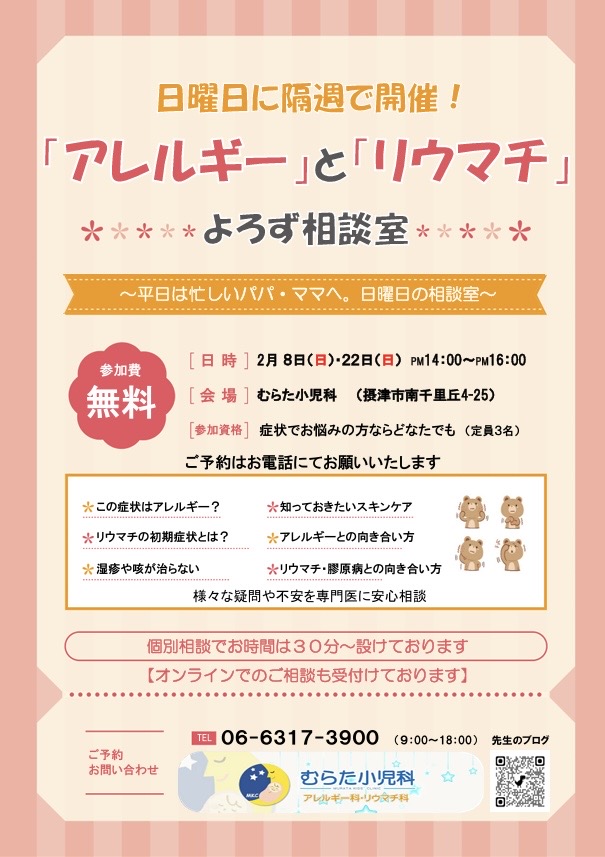 日曜日に「アレルギーとリウマチの相談室」を開催いたします。